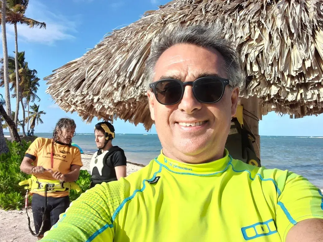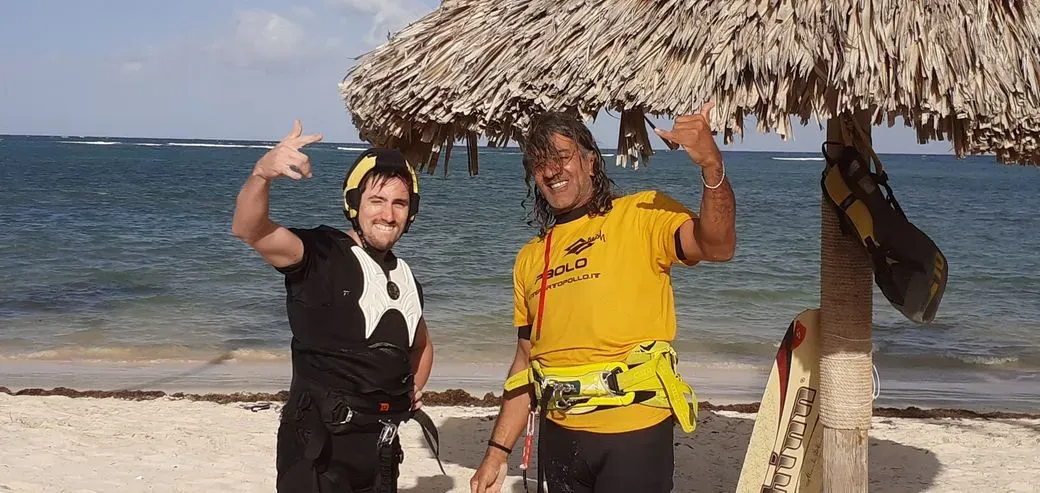 Paolo the Italian guy is an experienced kitesurf coach IKO level 3 certified , skilled in delivering both private and group lessons, proficient in Spanish and English, and adept at guiding riders from intermediate to independent levels using the KBOT boat and walky talky .